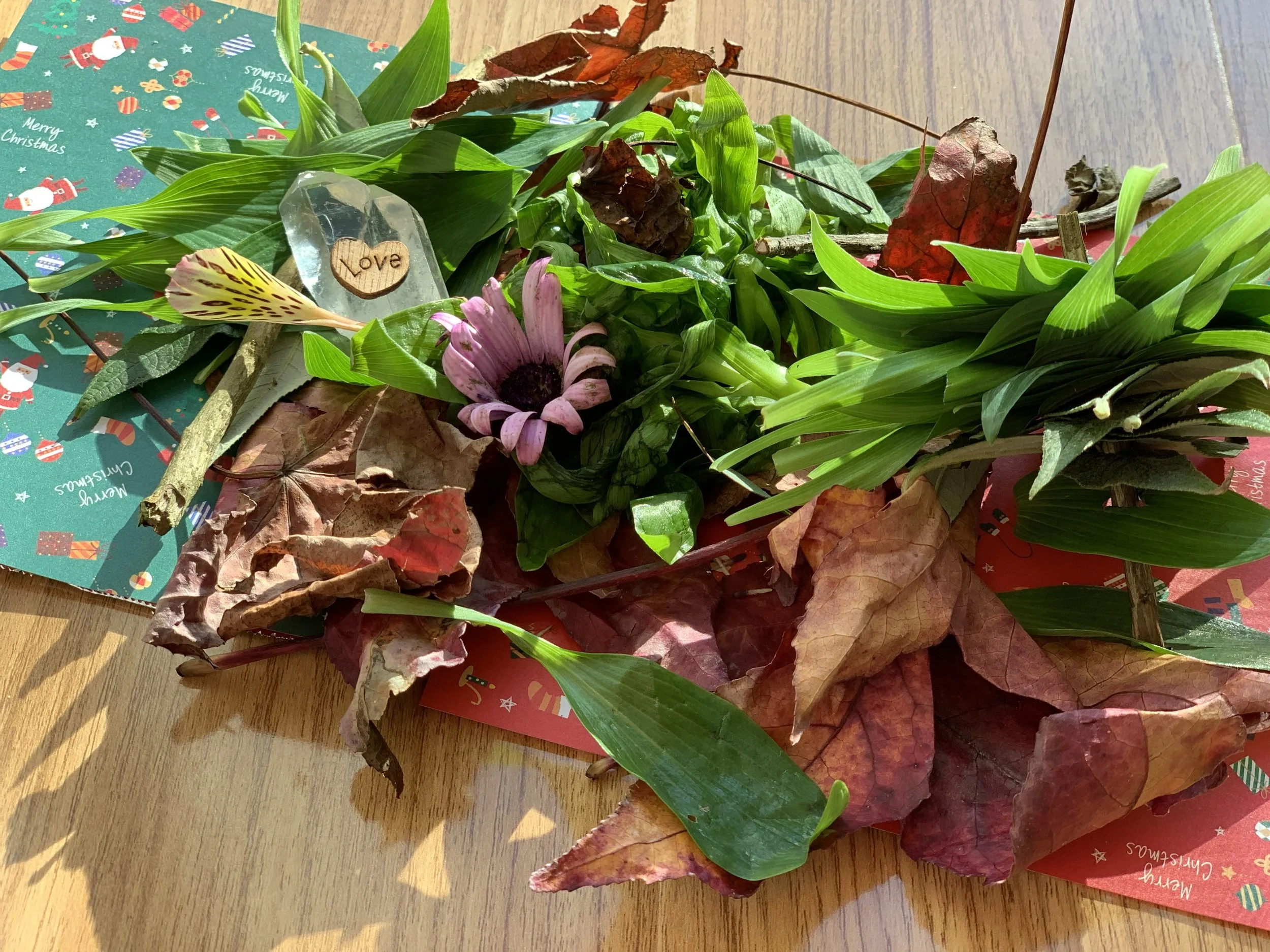 終わった後はガーデンで一緒に過ごすひととき。鶏の餌やりは毎日のお当番制だそうです。そしてまた素敵なお花や葉っぱの贈り物。「これは先生が寂しくなったら僕を思い出せるように!」って花びらをくれたり。