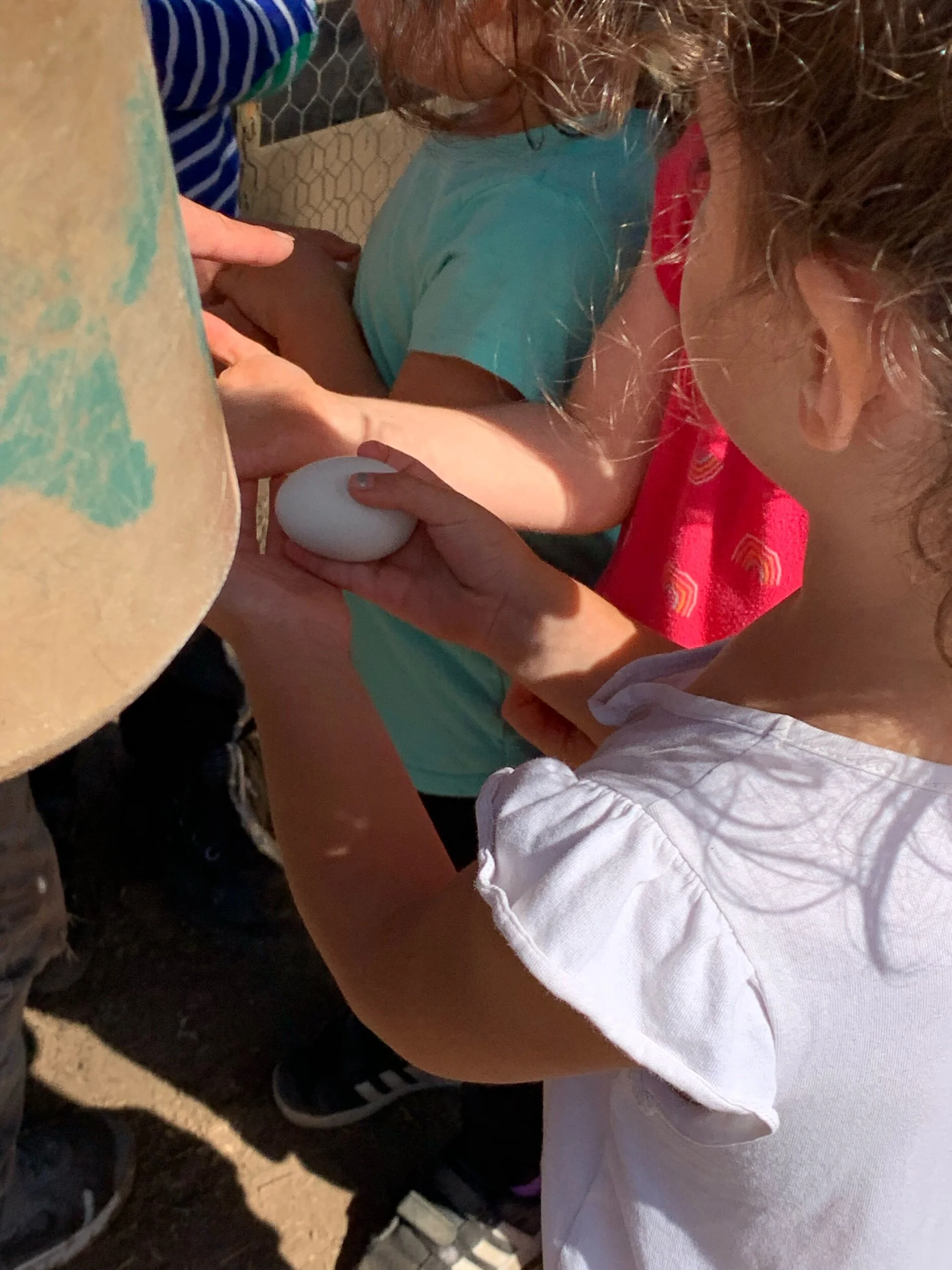 We fed the chicken together and picked up eggs. What a rich experience this school offers to the children. What a wonderful environment they provide!