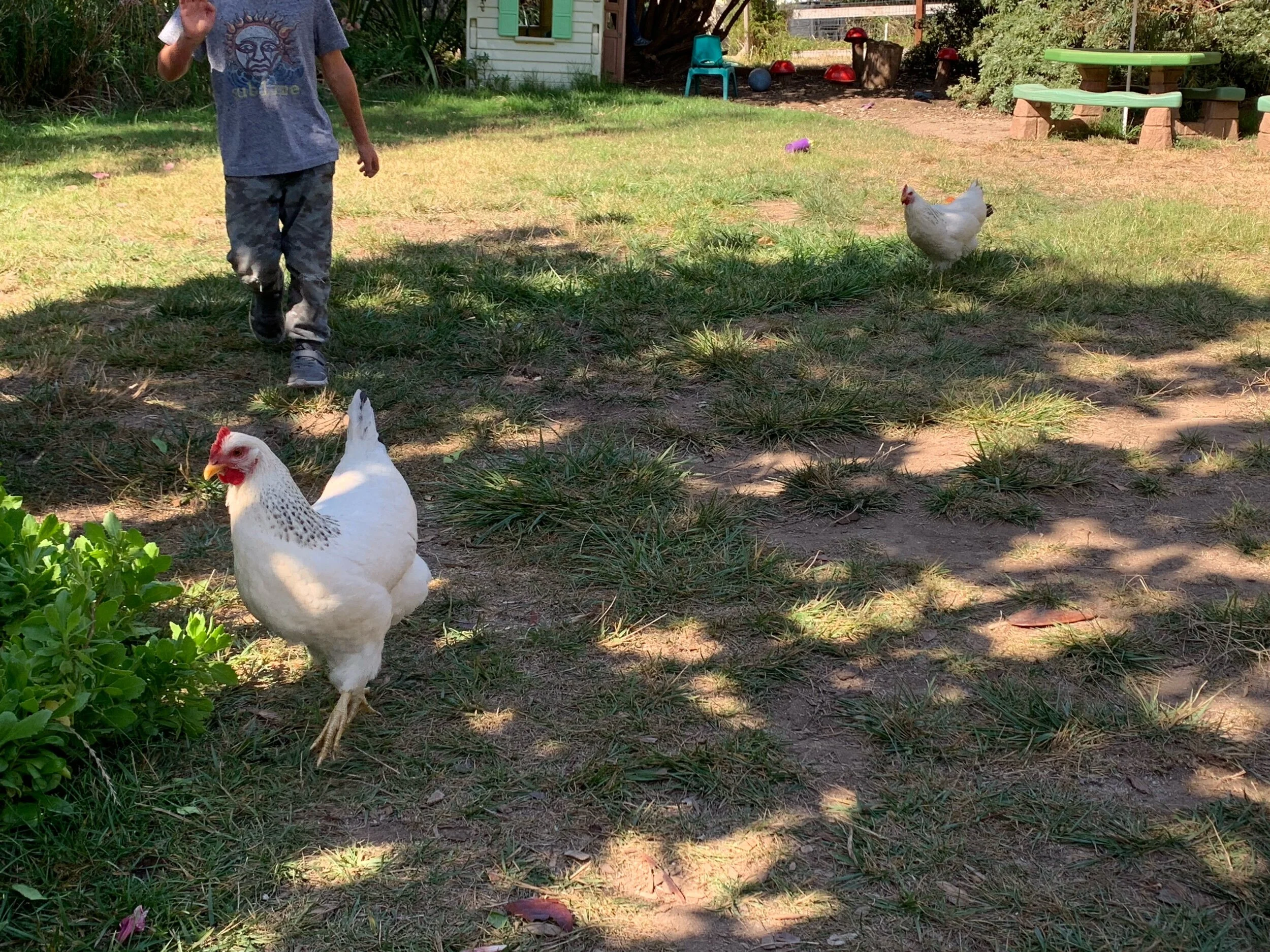 飼っているチキンに一緒に餌をあげて、たまごを拾って。なんて豊かな子供時代。本当に素晴らしい環境。