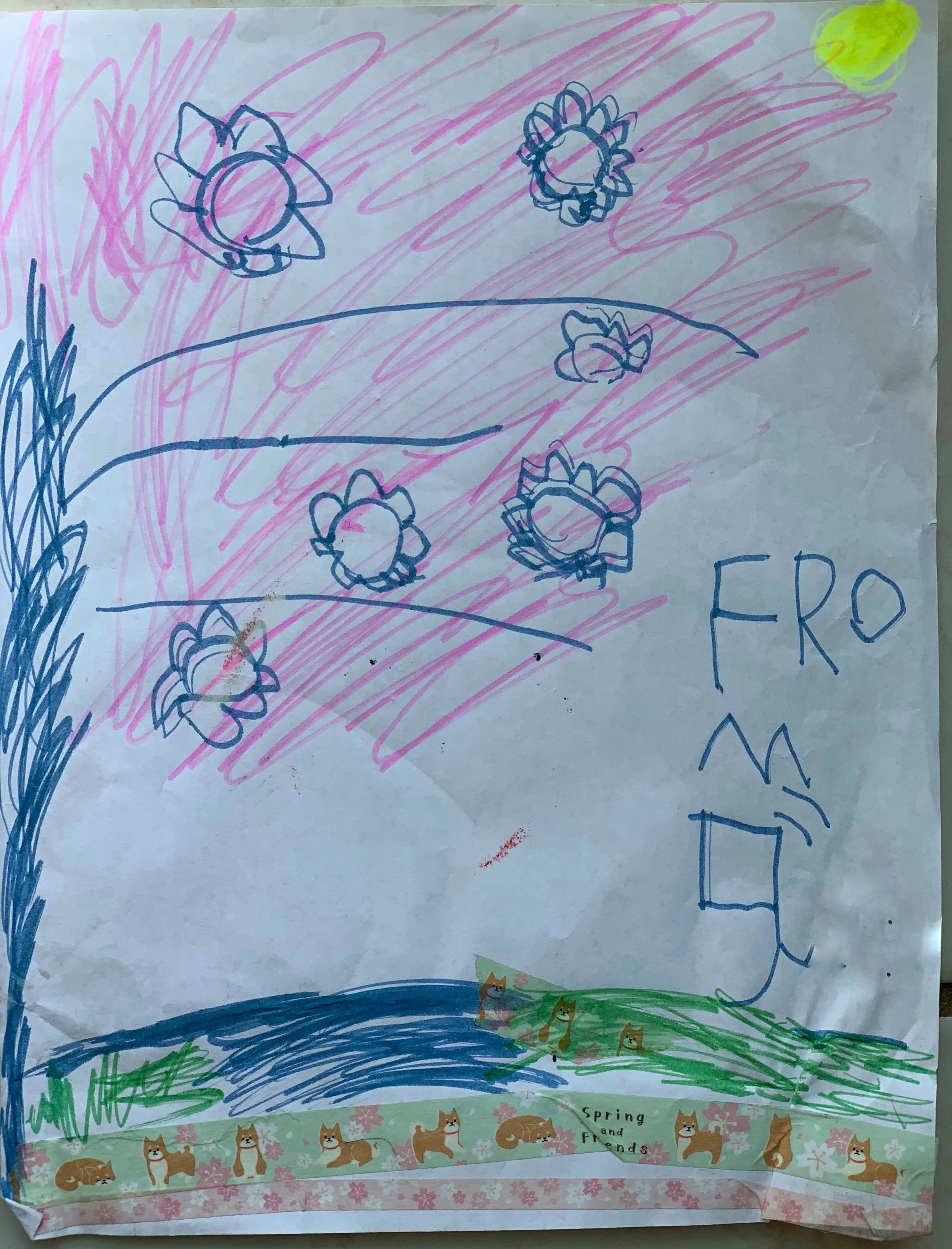 クラスで少し前に作った桜のカード。大事にカードに貼った和紙テープを、わざわざ剥がして私への絵に使ってくれたそう。大事にしていたものを先生のためにって絵を描いてテープを貼ってくれたなんて。こんな嬉しいことはない!